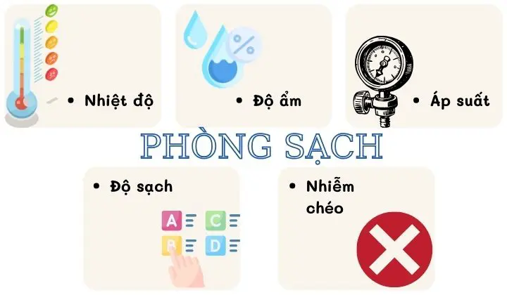 Để duy trì chất lượng không khí phòng sạch, nhà quản lý cần kiểm soát chặt chẽ các chỉ số sau: