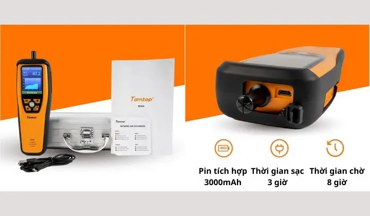 - Pin dung lượng lớn: Với viên pin 2200 mAh, máy có thể hoạt động liên tục từ 6-8 tiếng sau một lần sạc đầy, đủ cho một ngày làm việc kiểm tra hiện trường.