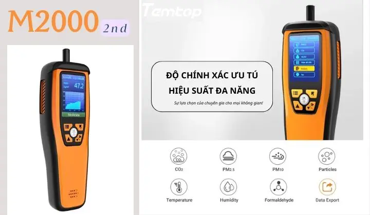 Các cảm biến HCHO và CO2 trên Temtop M2000 2nd yêu cầu thời gian “làm nóng” (warm-up) từ 3-5 phút sau khi bật máy để đạt độ ổn định tối ưu. Trong giai đoạn này, số liệu hiển thị có thể dao động hoặc cao hơn thực tế.